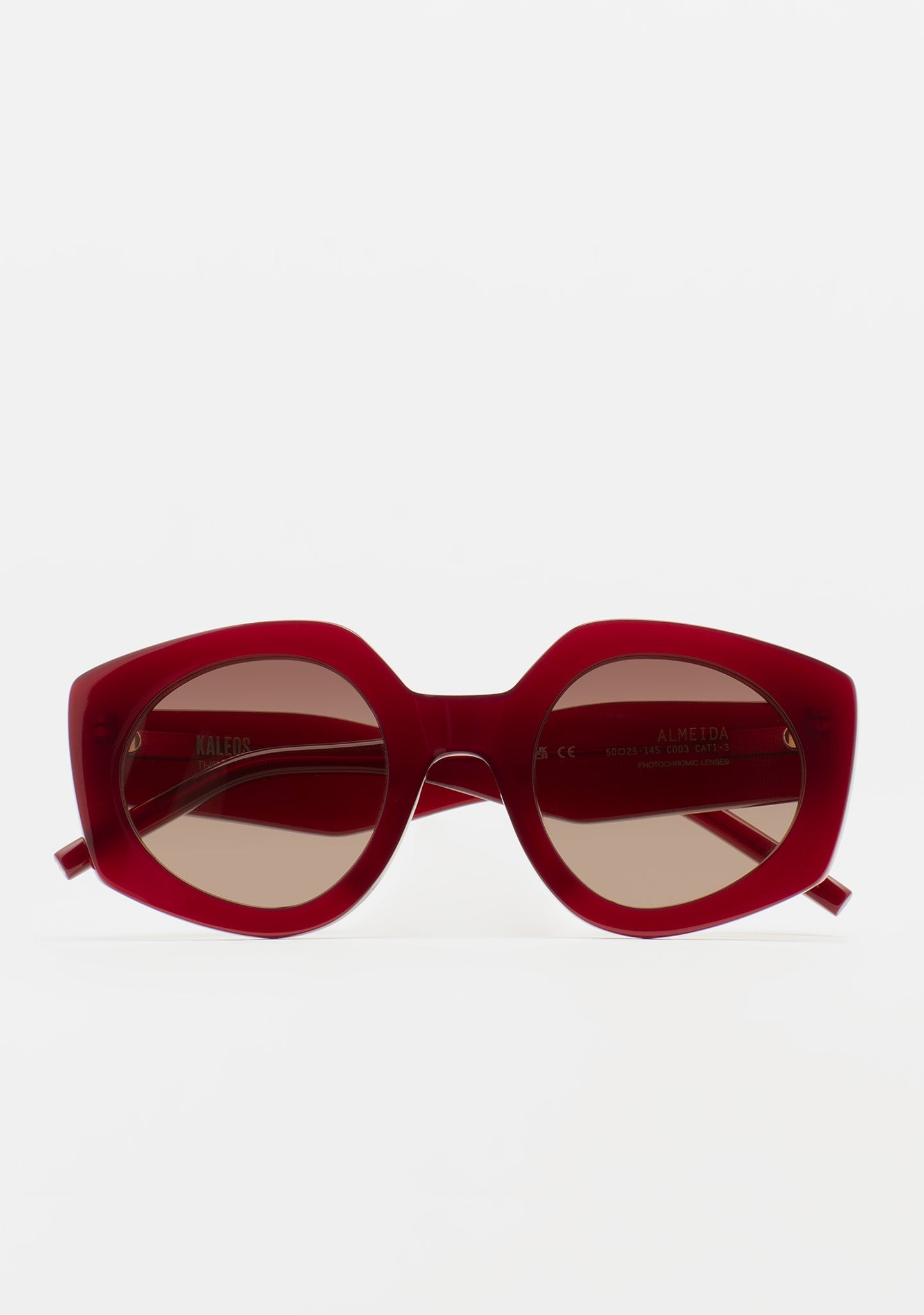 The sunglasses model Almeida is designed in Barcelona by Kaleos. Its amazing design makes it a perfect option if you are looking for extraordinary and quality designers' sunglasses for women. Handmade with italian Mazzucchelli acetate, the sunglasses' model Kaleos Almeida comes with thick front and temples, thinner temple tips for a better confort and a trendy geometric shape. Lenses are made from CR-39 material, with antireflection, photocromic and mineral. They block 100% of UV rays and enhance a great visual performance. Available in different color combinations.